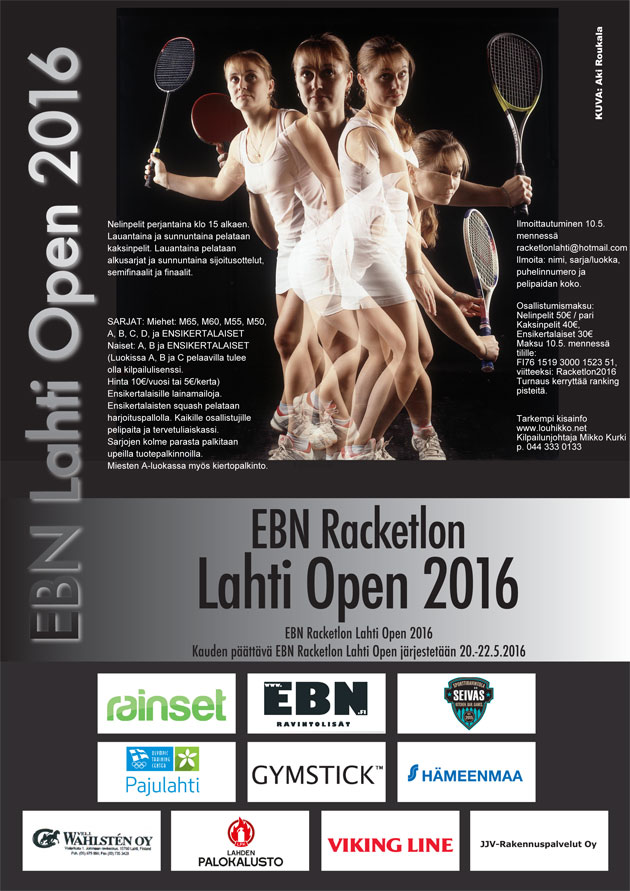 Perinteinen ja rennolla otteella vedettävä kauden päättävä EBN Racketlon Lahti Open järjestetään 20. – 22.5 Lahen Kisapuistossa.