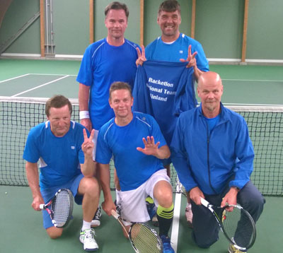 Miesten 55+ sarjassa Ari Kujala, Markku Merta, Jukka-Pekka NIeminen, Ike Rautio ja Karl-Christian Rundman pitivät Suomen seniorilippua mahdollisimman korkealla. Tällä kertaa yritys toi palkkioksi 5. sijan. Aluksi väkivahva Unkari lajilegenda Peter Sakovicin johdolla hoiteli Suomen selvin lukemin. Seuraava ottelu isäntämaa Tanskaa vastaan oli todellinen trilleri alusta alkaen. Huipennus koettiin viimeisen tennisottelun lopussa. Jukka-Pekka Niemisen viuhuva ohituslyönti tarkistettiin videolta ja kuten kuvassa näkyy pallon jälki osoittaa armottomasti pallon olleen 4 millimetriä ulkona. Saman verran sisällä niin Suomi olisi päässyt pronssiotteluun Englantia vastaan. Suomalaiset nielivät tappion nopeasti ja nylkivät päätösottelussa Tsekin päänahan tyylikkäästi ja tehokkaasti.