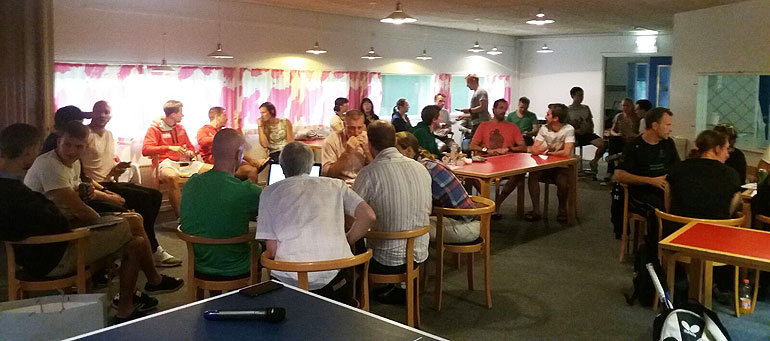 Joukkueenjohtajien kokous menossa