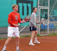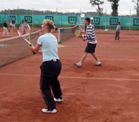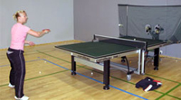 Ja mikäpä oli pelaajia katsastaessa. Kovaa porukkaa hallin täydeltä. Treenikaveriksi oli hankittu myös pöytätennisrobotti, joka väsymättä, pahojakaan kierteitä kaihtamatta, tarjosi palloja hikeä ja väsymystä pelkäämättömille racketlonisteille.