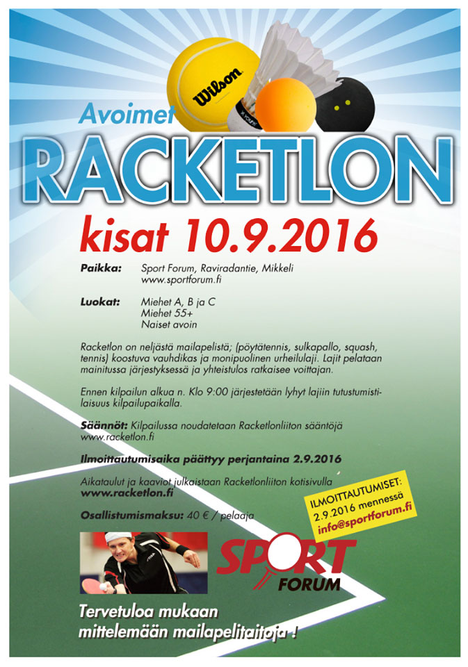 Haminan Luka Penttinen voitti Mikkelin Racketlonin A-luokan kukistamalla Oulun Tommi Laineen 8:llä pisteellä loppuottelussa. Pronssin vei niinikään Oulun Matti Impola lyömällä Jyväskylän Pasi Hyvärisen 7:llä pisteellä.