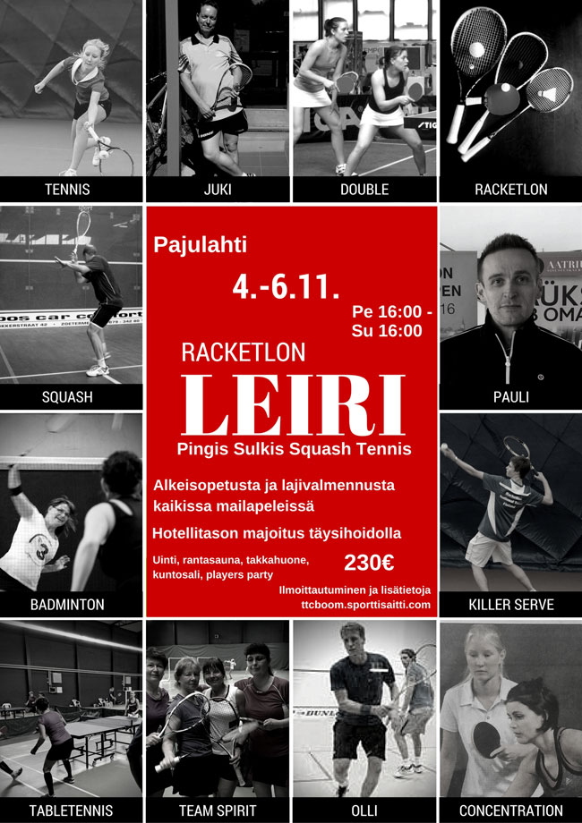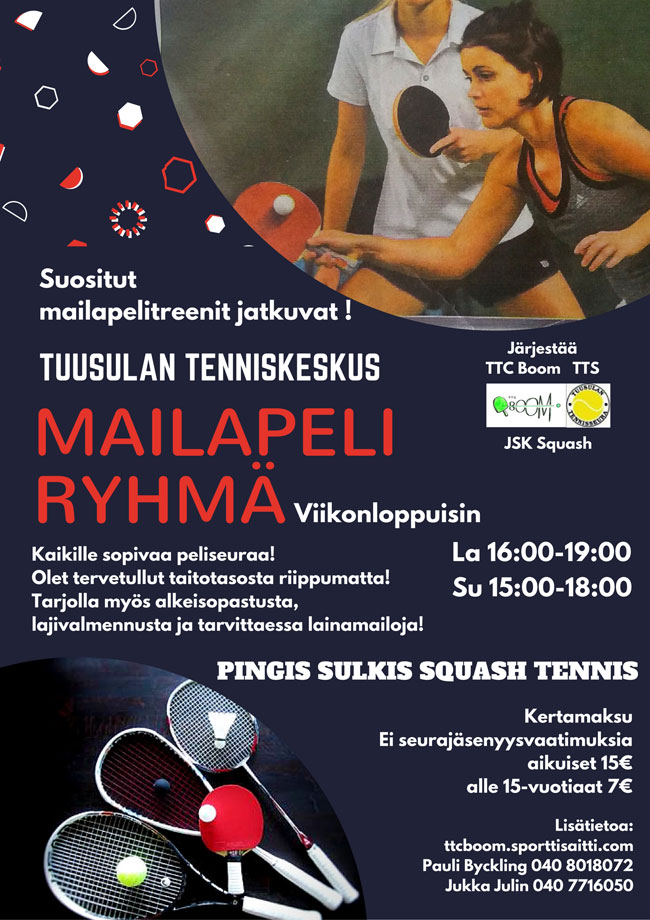 Mailapeleistä (racketlon) kiinnostuneille tarjolla mailapeliryhmä Tuusulassa ja leiri Pajulahdessa. Kutsut on julkaistu.