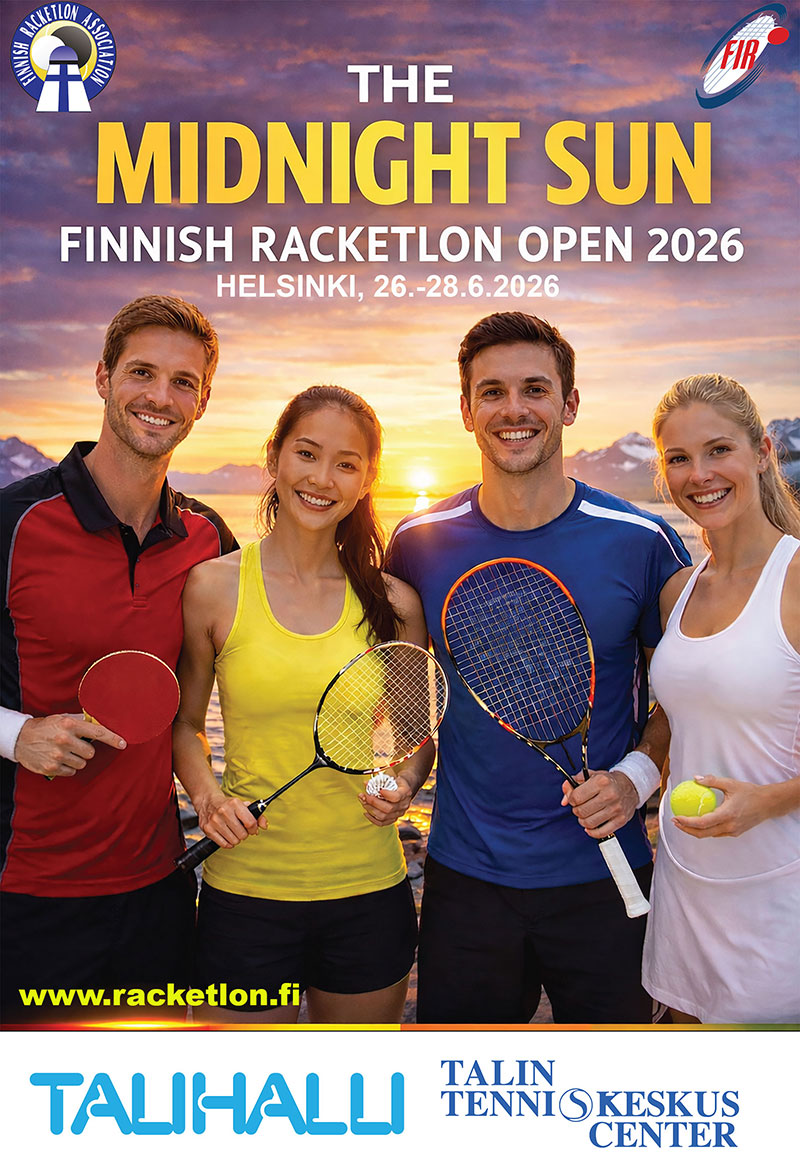 Finnish Racketlon Open 2026 uudistuu ja saa uuden nimen, pelipaikan ja ajankohdan. Nimi on Midnight Sun Finnish Open 2026, paikkana on Talihalli Helsingissä ja ajankohta 26.-28. kesäkuuta 2026.