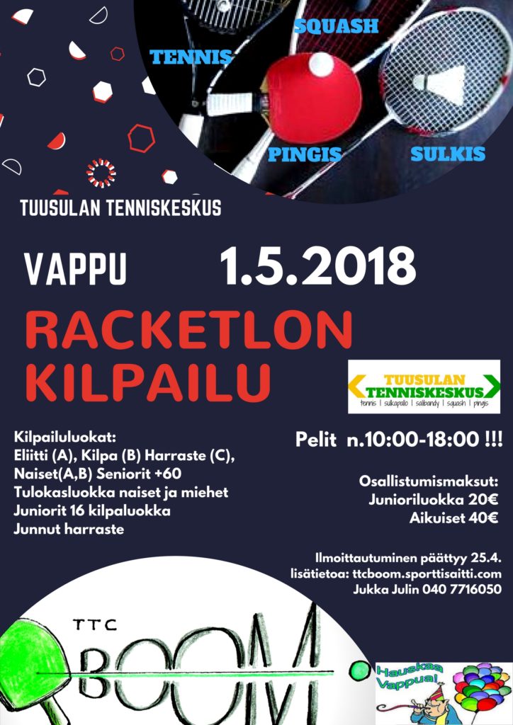C-luokassa ykkösijoitettuna kisaan lähti Boomin tuore Suomenmestari Heli Mäkelä. Edelle kiilasivat kuitenkin Markku Lönnberg ykkössijallaan ja toiseksi taistellut Markus Löfman. Neljänneksi tuli ensimmäisissä racketlonkisoissaan debytoinut Aaron Kiema, joka osoitti kehityskelpoisuutensa välittömästi ottamalla lajivoittoja jopa kolmessa eri osalajissa.